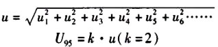 除了前文提到的測(cè)量結(jié)果的重復(fù)性、標(biāo)準(zhǔn)器示值誤差引起的不確定度u1、u2,引人各種干抗因子的不確定度分量應(yīng)附加到校準(zhǔn)結(jié)果中,根據(jù)需要附加進(jìn)行評(píng)定的因素,有u3、u4、u5、u6等。得到: