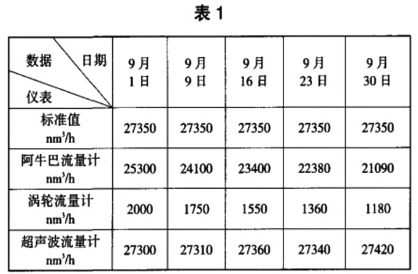 由于超聲波流量計(jì)所具有的特點(diǎn)使它作為計(jì)量儀表在煤氣計(jì)量中顯示出明顯的優(yōu)勢?,F(xiàn)將三種測量方法的測量數(shù)據(jù)比較如下,見表1。