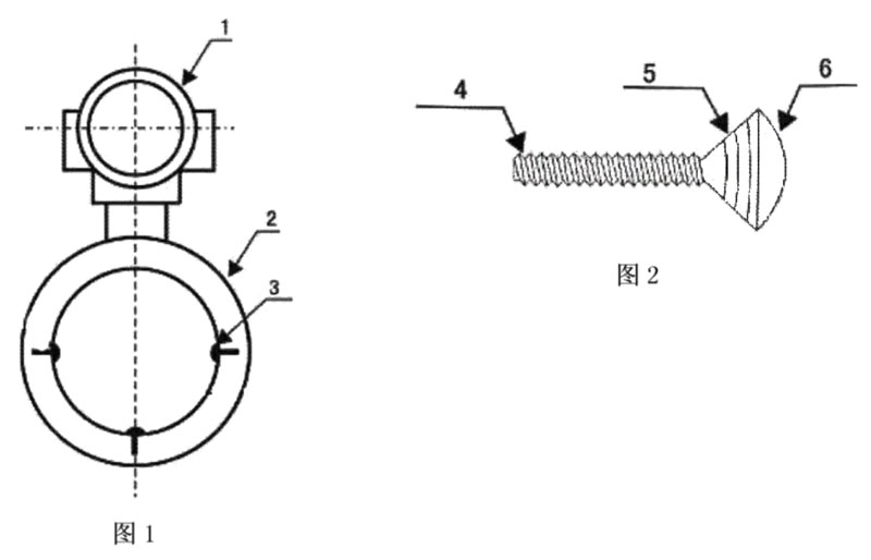 在實(shí)施例中,陀螺式電極智能電磁流量計(jì)包含傳感器筒體2、主機(jī)1、電極3,主機(jī)設(shè)置在傳感器筒體上,傳感器為筒狀結(jié)構(gòu),電極為陀螺式結(jié)構(gòu),并有電極桿4電極桿上設(shè)有螺紋,電極布置在傳感器筒體內(nèi),電極桿與傳感器筒體之間通過螺紋連接。電極包含電極杄4、電極托臺5、接液面6,電極托臺與接液面一起構(gòu)成陀螺結(jié)構(gòu),電極托臺與電極桿連為一體;接液面是電極與被測液體接觸面。電極桿上的螺紋旋進(jìn)傳感器筒體內(nèi)的內(nèi)襯材料里,電極桿的長度盡量長一些。電極托臺的形狀為錐型,電極托臺外緣與電極桿中心線成45°角,與接液面一起構(gòu)成陀螺結(jié)構(gòu)。