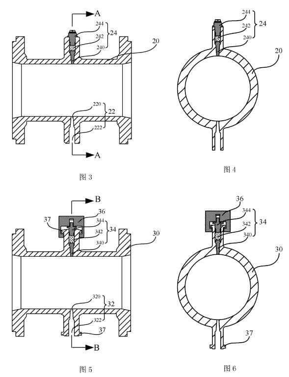 中,也可以是在經(jīng)過(guò)燒結(jié)工藝后的陶瓷測(cè)量管20上再進(jìn)行例如開鑿等后續(xù)加工工藝而形成電極插孔22。實(shí)際上,只要能制作出具有電極插孔的陶瓷管,其具體制作工藝并不限于上述的描述,仍可以有其他的變化,故在此不再贅述。