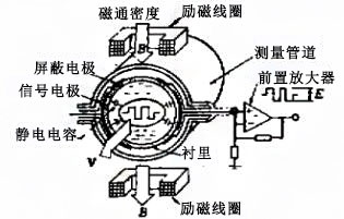 流體與信號電極之間的靜電電容可檁定測量。另外,電極式電磁流量計,在附著性物質的導電率很高時,會產生電動勢短路現象,同樣也會使輸出電流降低,影響測量精度,