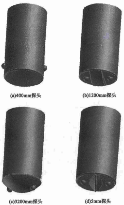 本文利用前處理軟件GAMBIT構(gòu)建工程上四種常見的插入式電磁流量計探頭形狀,如圖3所示。設(shè)定管道內(nèi)徑為400mm,插入深度為120mm,探頭半徑為32mm,電極半徑為5mm。