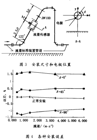1)在本試驗(yàn)安裝條件下,流量傳感器電極軸在A一90。位置時(shí)zui大誤差為一1.2,A一0。位置時(shí)為+1.6,A一45。位置時(shí)為0.5;與正常安裝條