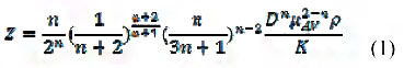 動特性為基礎(chǔ),可以運(yùn)用Z值法來判斷聚合物在圓管中的流態(tài)。判斷冪律流體在圓管中流型的計(jì)算公式如下所示。