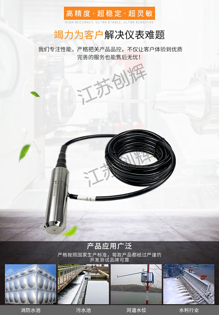 CH-TRSF系列防腐投入式液位變送器是基于所測(cè)液體靜壓與該液體的高度成比例的原理,采用國(guó)外**的隔離型擴(kuò)散硅敏感元件的壓阻效應(yīng),將靜壓轉(zhuǎn)換為電信號(hào),再經(jīng)過(guò)溫度補(bǔ)償和線性修正,轉(zhuǎn)化成標(biāo)準(zhǔn)電信號(hào)(一般為4~20mA)。