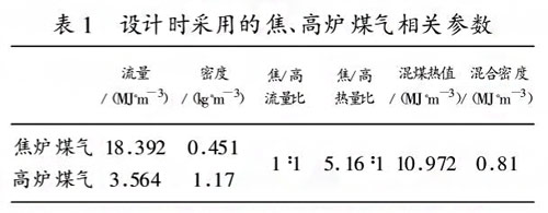 式中Qv焦?fàn)t為混合煤氣中焦?fàn)t煤氣的體積流量Qv高爐為混合煤氣中高爐煤氣的體積流量。